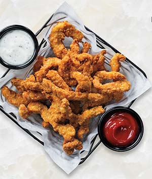 Tyson Chicken Twists. These tender, marinated and fully cooked chicken breast strips are lightly breaded and formulated to impart bold flavors in each bite. Whether fried or baked, they deliver versatility and can be served as an appetizer, small plate item, entrée topper or side dish.