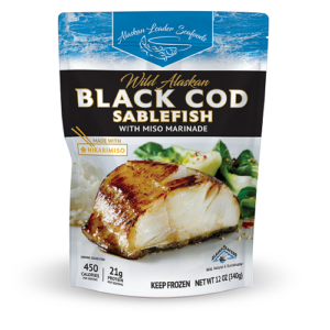 Miso Marinated Wild Alaska Black Cod (Sablefish) distributed in 12 oz bags by Edmonds, Washington-based Alaskan Leaders Seafoods. The wild caught fish is portioned and marinated in authentic Japanese miso. More information is available at Booth #1647.