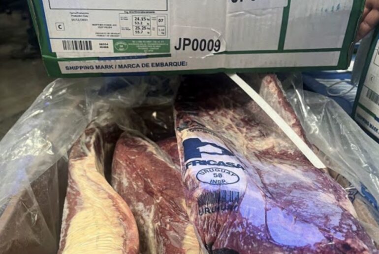 The products subject to recall bear Uruguay establishment number “58” printed inside the Uruguay inspection mark located on the shipping box and vacuum sealed product packaging. These items were shipped to distributors, restaurants, retailers, and institutions in Arizona, California, Oregon, and Washington state.