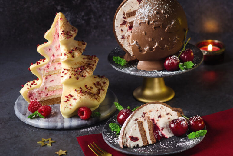 Despite limited budgets, consumers still want to indulge and frozen products can offer decadent treats at modest prices. Aldi, for example, unveiled its range of Christmas desserts (pictured above), which includes a Black Forest Snow Globe (£7.99) comprising vanilla flavored mousse with pieces of Amarena cherry, layers of chocolate sponge, and a sweet Amarena cherry compote with a base of hazelnut and chocolate crumble, enrobed in a chocolate flavored coating and finished with a dusting of icing sugar.