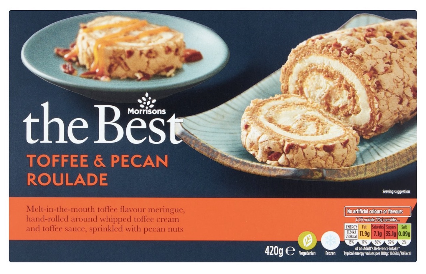 Morrisons Best Toffee and Pecan Roulade (£4.99) offers consumers a lighter option for dessert. With melt-in-the-mouth toffee flavor meringue, hand-rolled around whipped toffee cream and toffee sauce, sprinkled with pecan nuts, this premium frozen temptation offers great value and visual appeal.
