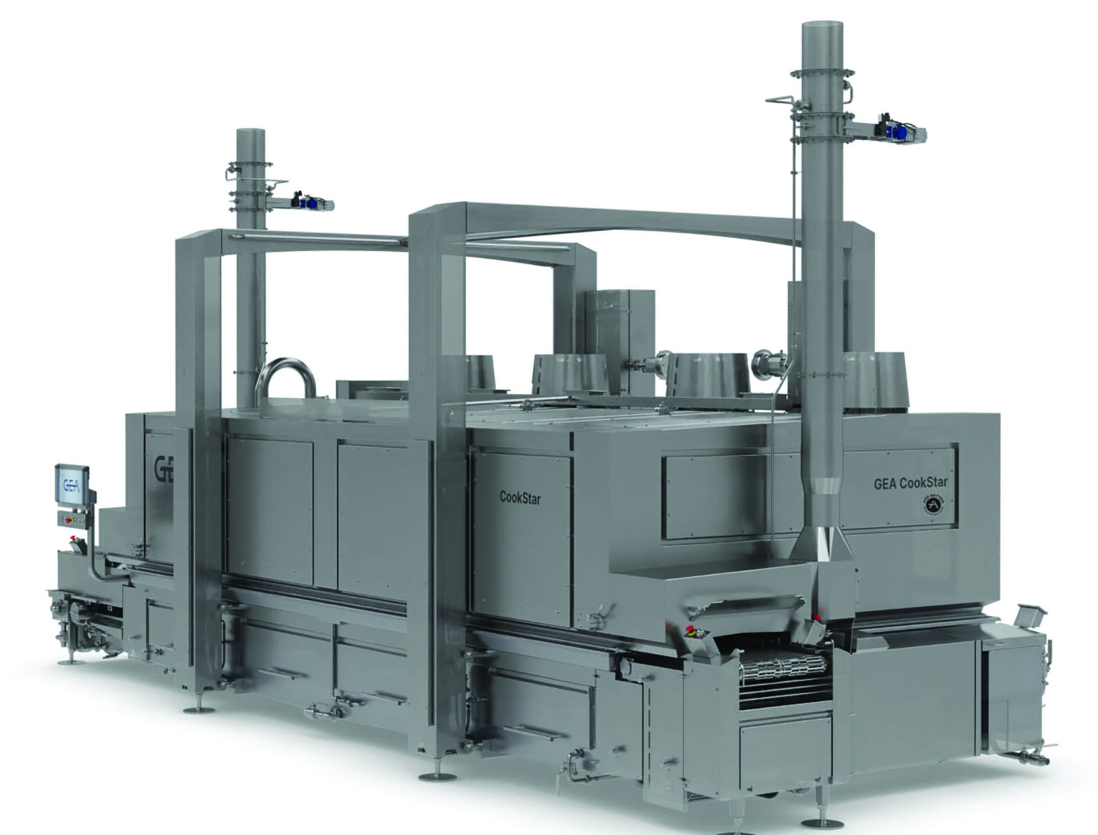 The broader CookStar family range includes the original CookStar model, which adds smoking functionality and higher capacity, as well as the CookStar Turbo for large-scale applications with capacities of up to 12,000 kg per hour and roasting capability. All systems share a common footprint and can be integrated into existing CookStar production lines.