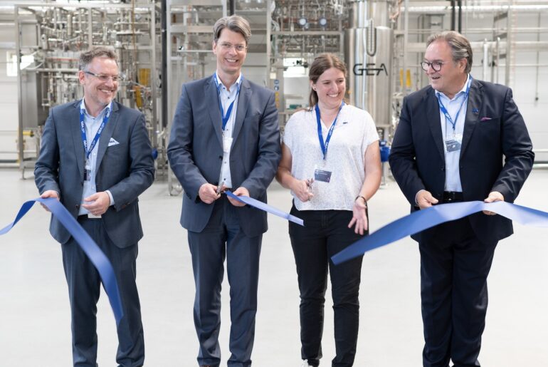 “Establishing and scaling up a new food production facility is a major task. In many cases, new food producers are still stuck at the lab scale – with the hygiene, aseptic and process requirements that involves. On the other hand, industrial-scale manufacturing presents much greater technical and financial challenges. At the ATC, our process experts explore the potential for mass production in order to make this step manageable for food manufacturers. Ultimately, GEA and our customers want to work together on the development of safe, affordable new food products for consumers,” said Heinz Jürgen Kroner, GEA’s senior vice president for new food (pictured above at far left during the site’s ribbon cutting ceremony).