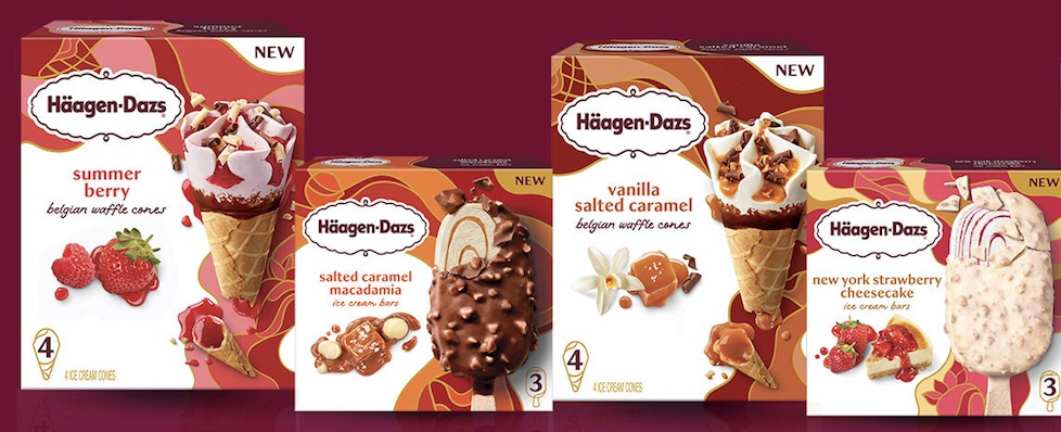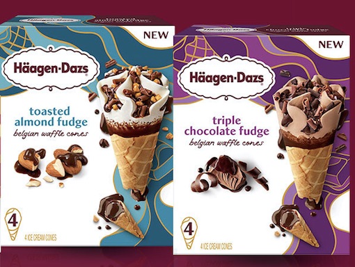 Häagen-Dazs has added six more products to its growing range of ice cream snacking innovations. Now rolling out to retail stores across the USA are four flavors of Belgian Waffle Cones along with two new ice cream bar options.