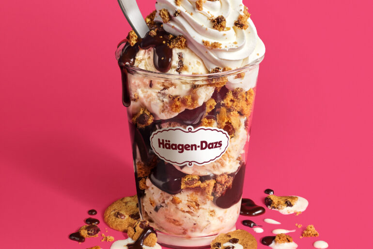 Häagen-Dazs is redefining the ice cream sundae in its USA with an elevated, indulgent creation: the Salted Brown Butter Cookie Dazzler – a luxurious twist on the classic ice cream sundae. The new creation features Salted Brown Butter Cookie ice cream paired with chocolate chip cookies, hot fudge, and topped with whipped cream. The treat is available at Häagen-Dazs Shops nationwide from April 1 through June 14,