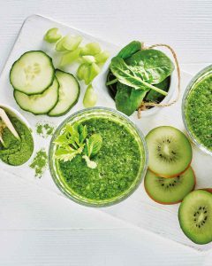 Another option is the energizing Green Cleansing Juice Smoothie, filled with kiwi, celery, cucumber and spinach. Then there the Mango, Pineapple and Kale Smoothie, an especially healthy, refreshing and tasty way to kick-start the day.