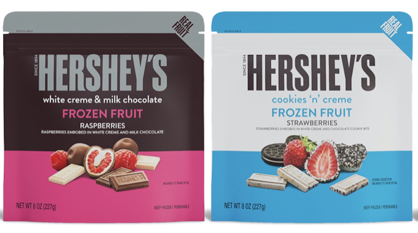 • Hershey’s White Creme & Milk Chocolate Frozen Fruit Raspberries – raspberries, first draped in white creme, then in milk chocolate to create a fusion of creamy sweetness and tart fruitiness.