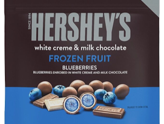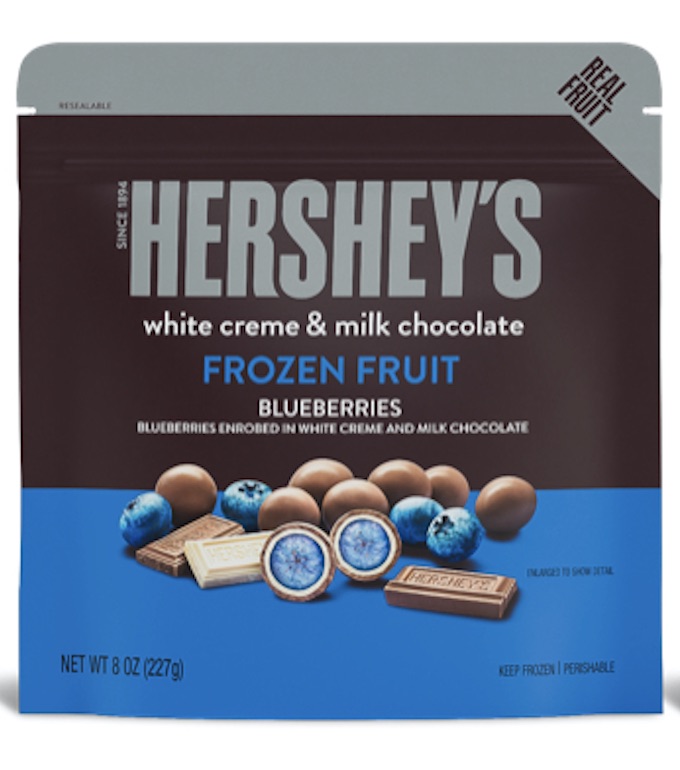 • Hershey’s White Creme & Milk Chocolate Frozen Fruit Blueberries – frozen blueberries are enrobed in white creme, then followed by milk chocolate, creating a double dipped bite-sized treat.