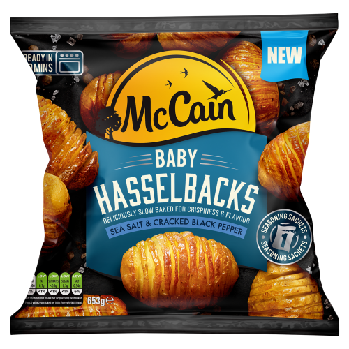 McCain Foods has launched Baby Hasselbacks in the United Kingdom featuring slow-baked skin-on, pre-sliced whole baby potatoes drizzled with vegetable oil. Priced at £3.69 and distributed in 653g bags, the gluten-free frozen product comes with sea salt and cracked black pepper sachets and is now available at Co-Op, Waitrose, ASDA, Tesco, Sainsbury’s, Morrisons and Iceland stores across Britain.