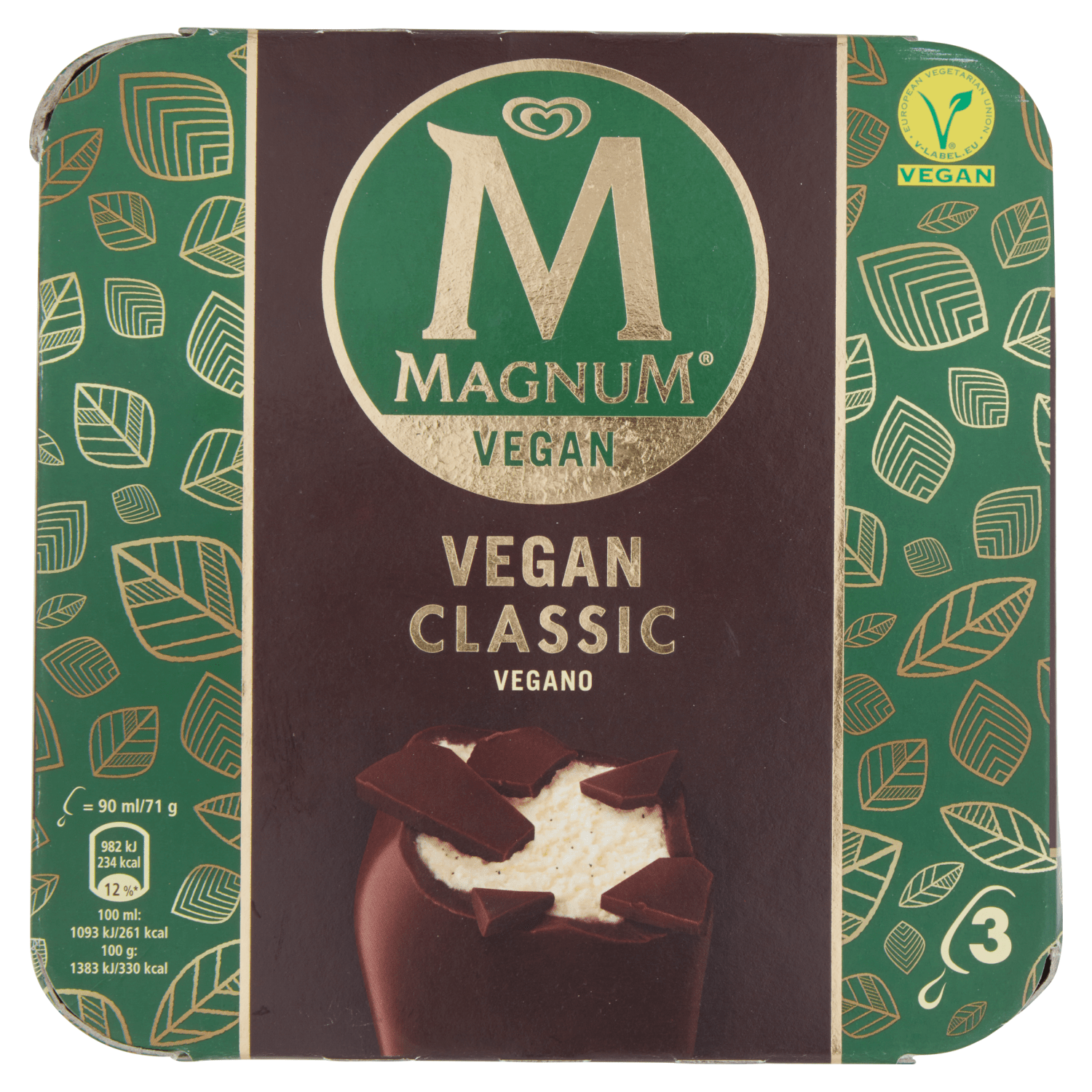 ASDA sells Magnum Vegan Classic ice cream for £3.50 per pack of three.