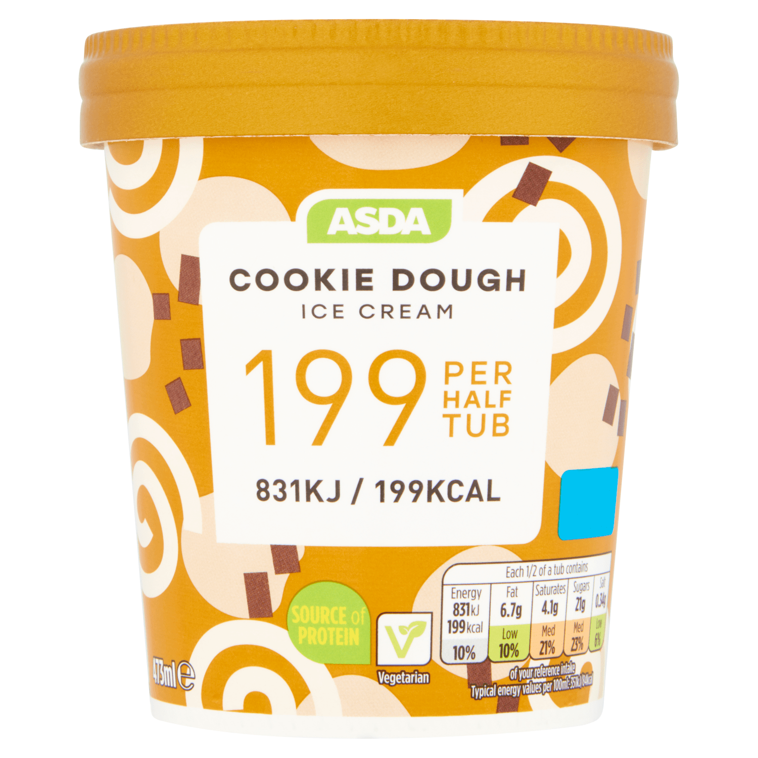 Cookie Dough ice cream, another low calorie offering from ASDA, serves up just 199 calories per half tub.