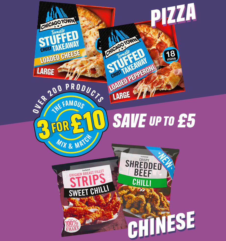 Following news that the average cost of weekly grocery shopping trips has recently risen by 11.6% in the United Kingdom, the Iceland retail chain has announced a 3 for £10 deal that could see shoppers save up to a third on the total price of three main meal items.