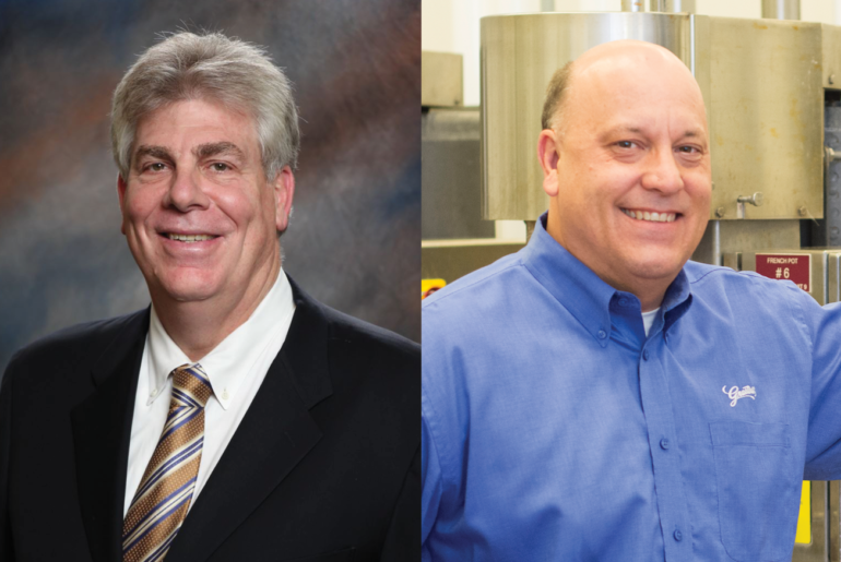 The Harrisburg, Pennsylvania-hedquartered National Frozen & Refrigerated Foods Association (NFRA) and the American Frozen Food Institute (AFFI) have announced that the Distinguished Order of Zerocrats has inducted two industry leaders into the 2021 Frozen Food Hall of Fame. The inductees are Ray Tarnowski (seen at left in photo aboue), retired president of Philadelphia Warehousing & Cold Storage, and Richard Graeter (pictured at right in photo above), president and chief executive officer of Graeter’s Ice Cream Company.