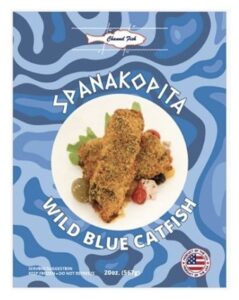 Reimagining a popular Greek classic, this offering (pictured below) features mild, flaky wild blue catfish accented with the vibrant flavors of creamy feta cheese and flecks of spinach. The culinary delight incorporates phyllo dough upcycled into a crunchy breading. More than just a feast for the palate, this offering spotlights the Braintree, Massachusetts-based company’s commitment to sustainability by utilizing domestic wild blue catfish, an invasive species in the Chesapeake Bay.