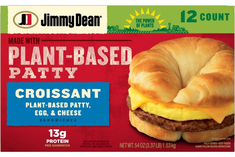 Tyson Foods’ Jimmy Dean brand is launching two faux meat frozen breakfast offerings at supermarkets and other retail stores in the United States: the Jimmy Dean Plant-Based Patty, Egg & Cheese Croissant Sandwich, and the Jimmy Dean Delights Plant-Based Patty & Frittata Sandwich.