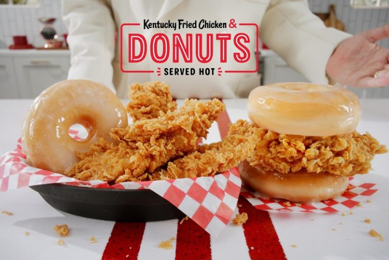- Kentucky Fried Chicken & Donuts Sandwich, a juicy Extra Crispy chicken filet sandwiched between two fully glazed donuts