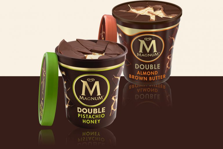 Unilever North America has introduced three new Magnum Ice Cream offerings to retail customers in the United States: Non-Dairy Sea Salt Caramel Bars, Double Pistachio Honey Tubs and Double Almond Brown Butter Tubs.
