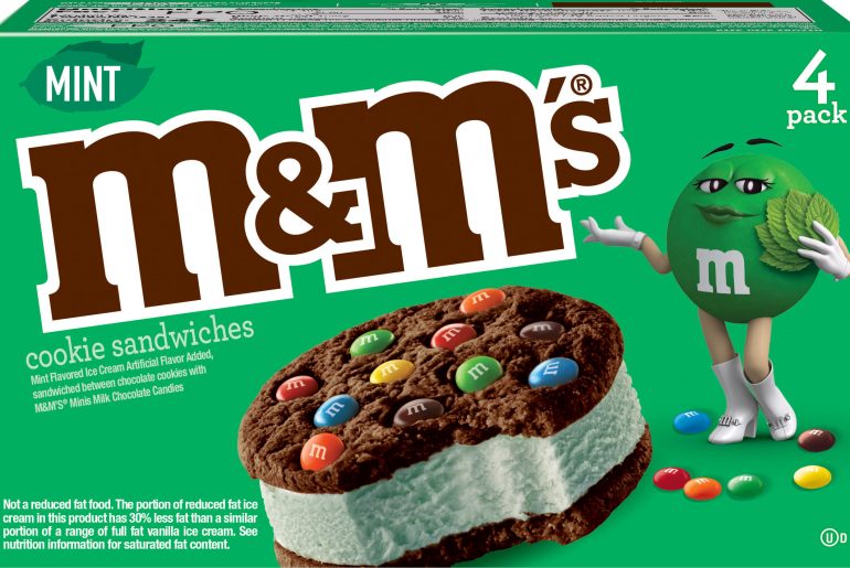 Just in time for American consumers seeking a green St. Patrick’s Day treat, Mint Ice Cream Cookie Sandwiches feature refreshing mint-flavor ice cream between two chocolate cookies with Milk Chocolate M&M’S Minis.