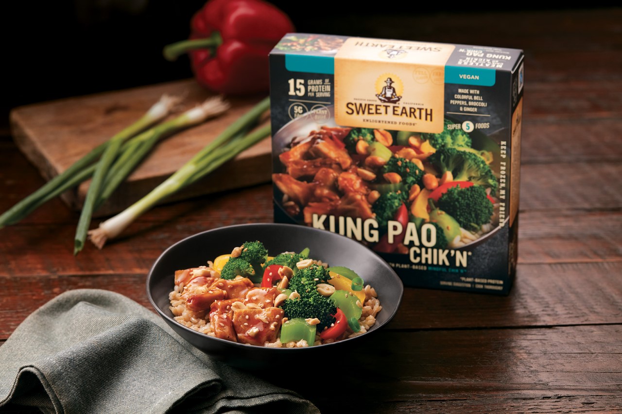 - Kung Pao Chik’n, featuring plant-based Mindful Chik’n, rice, celery, toasted peppers, bell peppers and kung pao sauce that is a solid source of potassium, protein (15 grams) and fiber (5 grams).