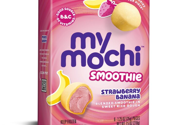 Mochi in the Morning. This new line of Smoothies wraps premium fruit puree in soft rice mochi dough, providing antioxidants and a good source of vitamins B and C. The first two flavors – Strawberry Banana (pictured above) and Mixed Berry – are available nationwide now.