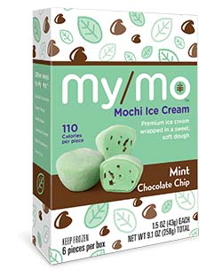 Mikawaya, the Los Angeles-based company that originated and first commercialized mochi ice cream in the United States in the early 1990s, has launched the MyMo brand mochi ice cream. The line offers Ripe Strawberry, Sweet Mango, Double Chocolate, Vanilla Bean, Cookies & Cream, Green Tea and Mint Chocolate Chip premium ice cream wrapped in sweet, soft dough. Distributed in 289-gram six-packs, the calorie count for each dumpling-size serving is 110.