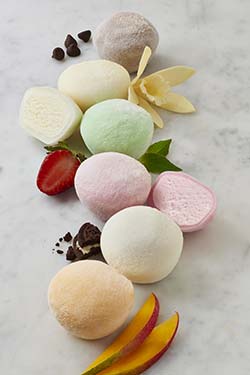 Double Chocolate, Vanilla Bean, Mint Chocolate Chip, Ripe Strawberry, Cookies & Cream and Sweet Mango flavors make up the new assortment of MyMo Mochi Ice Cream from Mikawaya.The flavors, formulated to appeal especially to mainstream millennial consumers, are now available at nearly 200 locations in a dozen markets in the Northern California, Midwest, Northeast and Southeast regions. A nationwide rollout to major retail chains and foodservice outlets will take place in 2017.