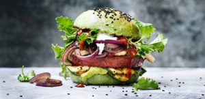 The burger creates the experience of eating a beef burger using natural soy and wheat protein, color from natural plant extracts, chopped coconut oil, and a proprietary method of fermenting plant-based ingredients to boost the “umami” flavor of the burger.