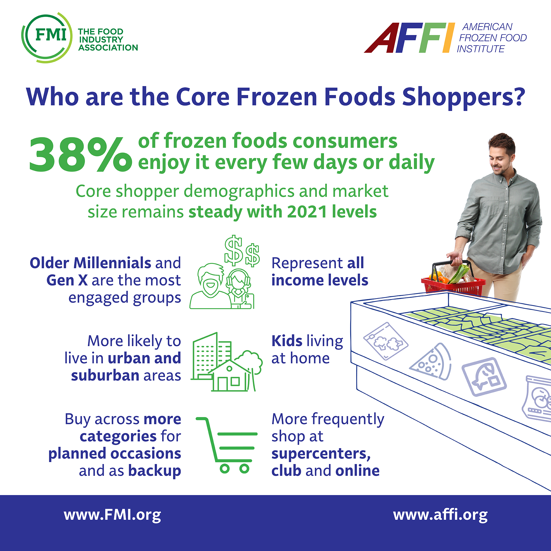 “Frozen foods remain relevant to shoppers through product innovation, variety and important attributes like sustainability and health and well-being. They continue to be essential to shoppers and there is an opportunity for food retailers to apply the insights from core frozen food shoppers to other shoppers and see real gains,” said Stein.