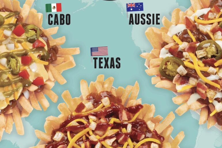 Wienerschnitzel quick service restaurants in the United States have added “Chili Cheese Fries from Around the World” to the menu. Featured are: Aussie Chili Cheese Fries, loaded with jalapeño slices, grilled onions, chopped bacon and horseradish aioli; Cabo Chili Cheese Fries, accented with jalapeño slices, diced onions, chopped tomato, green pepper hot sauce and cheddar cheese sauce; and Texas Chili Cheese Fries, boasting a combination of sweet and tangy flavor with BBQ sauce, chopped bacon and grilled onions.