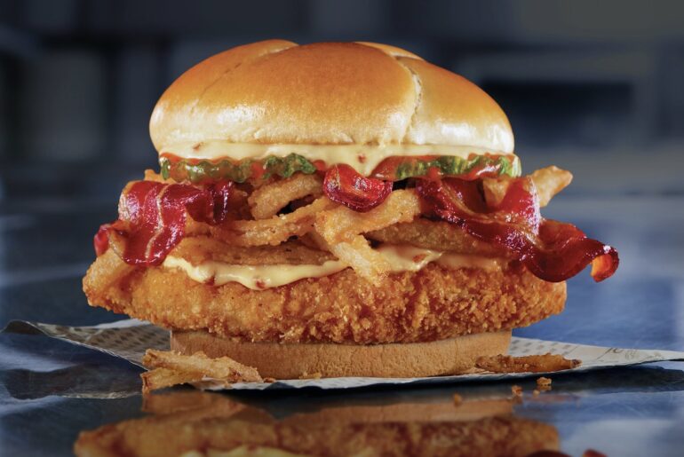 “Look no further if you’re ready to be blown away by our newest chicken sandwich with no equal,” boasted Ryan Joy, senior director of development at Checkers Drive-In Restaurants, Inc. “While the sandwich is made complete with beer cheese flavor sauce, we assure everyone it’s safe to enjoy in our drive-thru behind the wheel. The only thing you might be under the influence of is the crazy amount of flavor found in every bacon-infused bite.”