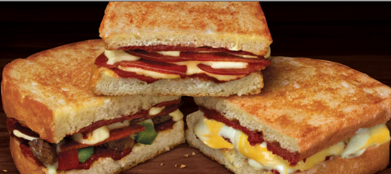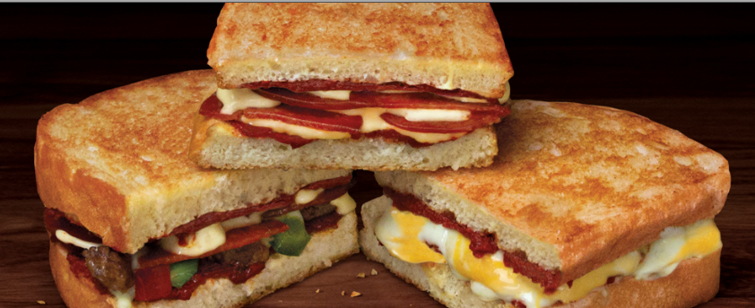 - Four Cheese Pizza Melt: pizza sauce and mozzarella, cheddar, provolone and Parmesan cheeses in between toasted bread