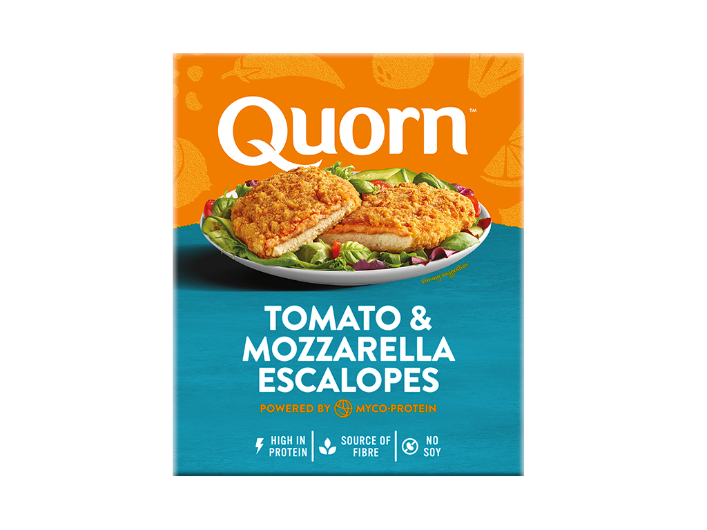 Priced at £2.65 and set to launch on August 14 at Asda supermarkets throughout the United Kingdom, Tomato & Mozzarella Escalopes are made with Quorn mycoprotein coated in breadcrumbs and topped with tomato and mozzarella sauce. The high-protein product is scheduled to debut at Tesco on September 11and at Morrisons on November 6.