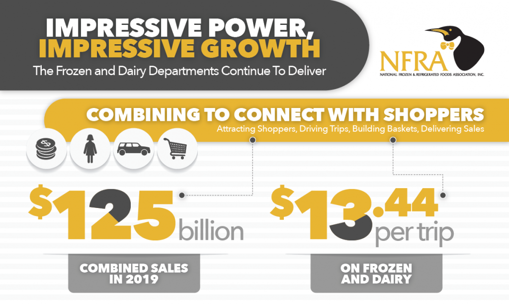 “Both the frozen and dairy departments have strong, broad appeal among consumers with the potential to drive short- and long-term growth for retailers. In 2019, dollar and unit sales increased in both departments attesting to consumers’ renewed excitement about the innovative products they can find there,” said NFRA President and CEO Skip Shaw.