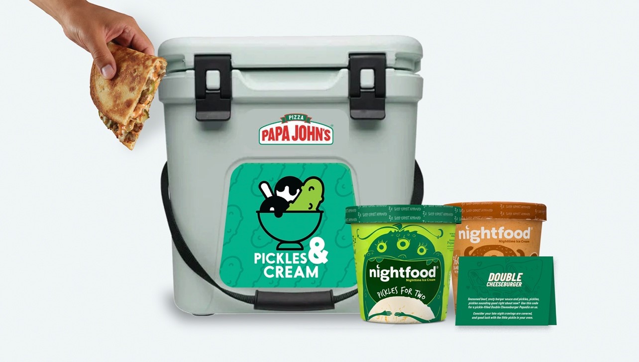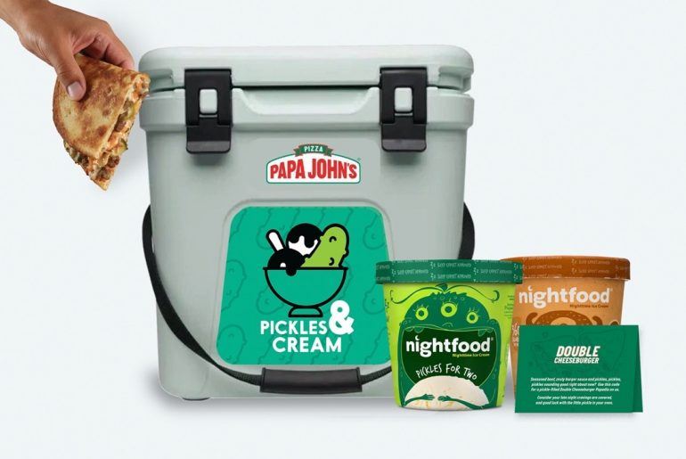 As part of the promotion, influencers and other consumers were selected to receive a custom cooler, pints of Nightfood’s Pickles For Two, and a Papa John’s Double Cheeseburger Papadia, delivered from their local Papa John’s restaurant.
