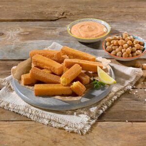 Golden brown and crispy on the outside, creamy and mildly nutty on the inside, Frostkrone Food Group’s vegan sticks made from chickpeas serve up plenty of protein and calcium. The Reitberg, Germany-headquartered company’s Chickpea Fries, which can be prepared in one’s home oven in just a few minutes, are a tasty treat as finger food for casual snacking or as a side dish.