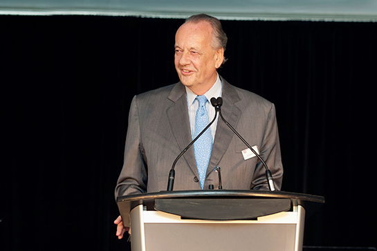 August Oetker, chairman of Bielefeld, Germany-headquartered Dr. Oetker, speaks at the grand opening of the multinational company’s new frozen pizza production plant in London, Ontario, Canada. The fourth-generation family-run company is led by his brother, Richard Oetker, great-grandson of the founder.