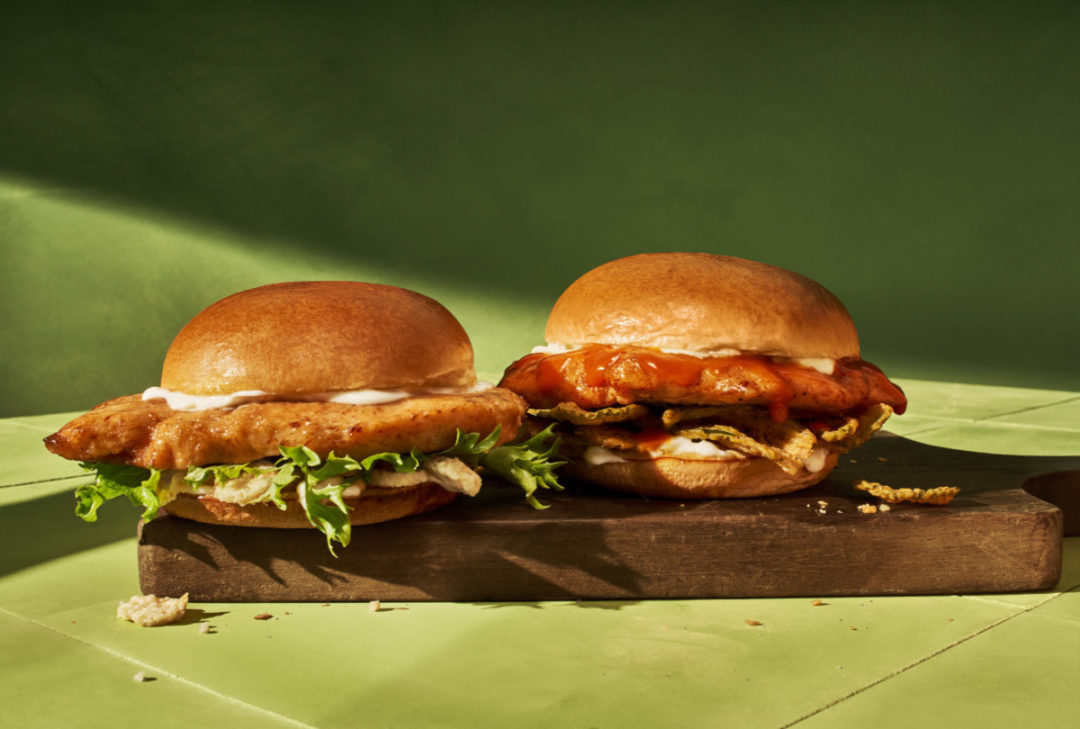 As for the the Spicy Take,” instead of parmesan crisps there are spicy, crispy pickle chips alongside garlic aioli for an added layer of crunch and spice. The chicken breast filet is then stacked on a brioche roll and topped with spicy buffalo sauce made with ingredients including aged red cayenne pepper and roasted garlic balanced with sweet honey and molasses.
