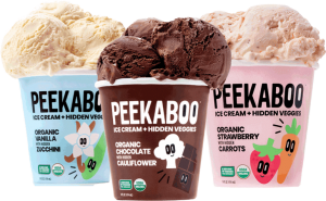 Among other flavors in the Peekaboo range are Organic Unicorn with Hidden Zucchini, Vanilla with Hidden Zucchini, Chocolate with Hidden Cauliflower, Strawberry with Hidden Carrot, Mint Chip with Hidden Spinach, and Strawberry Sorbet with Hidden Tomato.