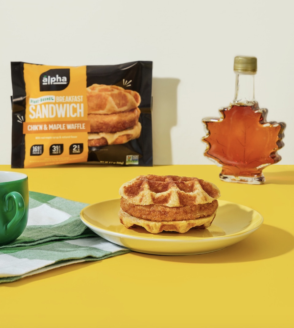 “According to a recent survey conducted by Alpha and the Harris Poll market research and analytics company, 73% of Americans feel stressed during weekday morning breakfast time, and more than two-thirds want to ‘up’ their breakfast game,” said Cole Orobetz, Alpha co-founder and chief executive officer. “Our new Chik’n & Maple Waffle Breakfast Sandwich is a delicious plant-based recreation of America’s favorite brunch classic, ready in minutes. What could ‘up’ your breakfast game more than that?”