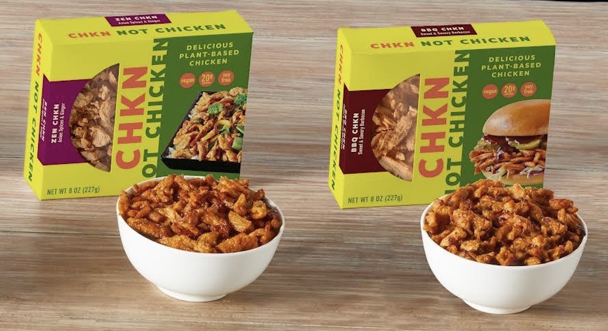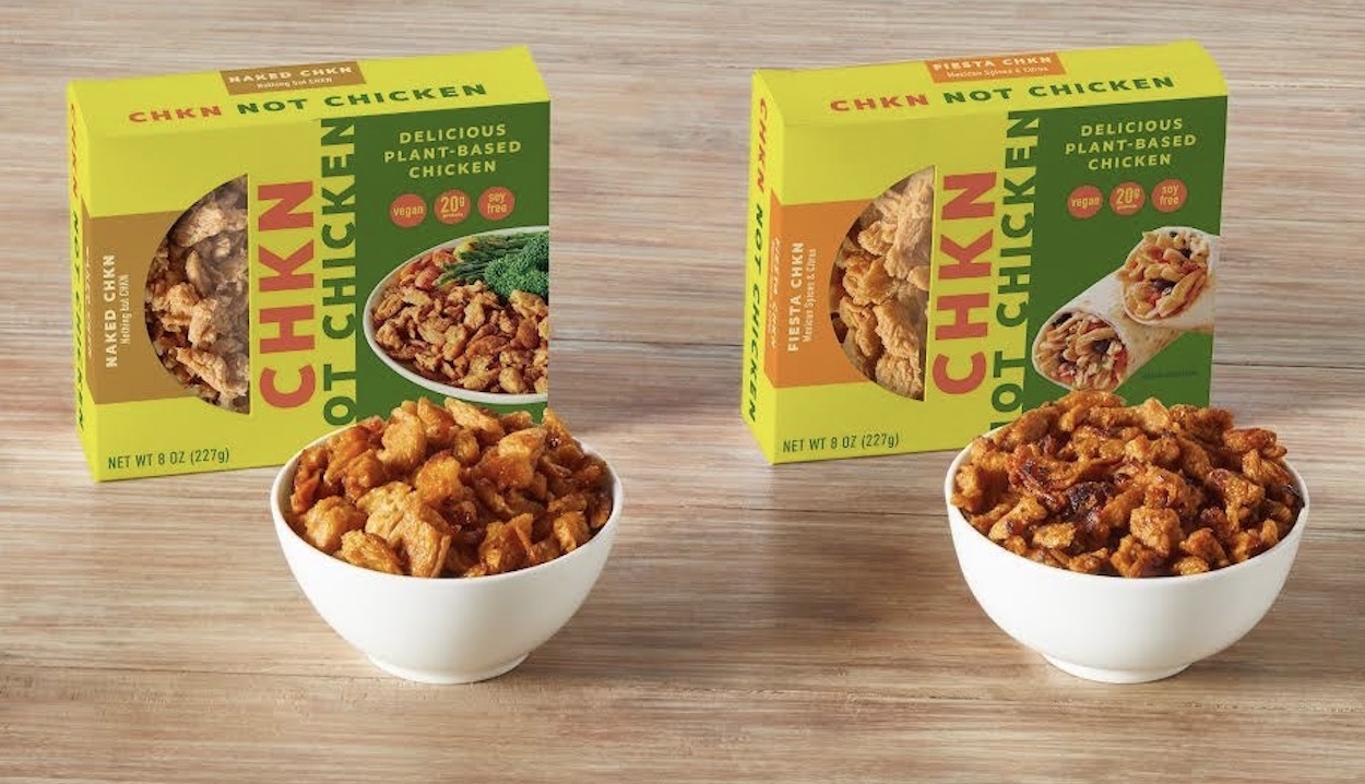 Sprouts is offer customers four varieties promoted as “replicating all the juiciness, texture, and flavor of chicken.” The flavors are: Naked CHKN (original), Zen CHKN (with Asian spices and ginger), Fiesta CHKN (Mexican spices and citrus), and BBQ CHKN (sweet and savory barbecue).