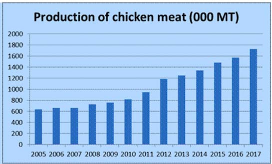 It is forecast that in 2017 poultry consumption will increase by an additional two percent because of higher production and a decrease in retail prices. Poultry meat constitutes 38% of total meat consumption in Poland, compared to 55% for pork and only two percent for beef. It is estimated that consumption of poultry from backyard production amounts to 6.5% of total poultry meat production.