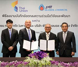 Thai Union Group PCL (TU) and PTT Global Chemical PCL (PTTGC) have signed a memorandum of understanding (MoU) for and R&D partnership that will focus on the development of innovative and environmentally friendly bio-based and petroleum-based materials and packaging for the food industry. The goal is to enhance food safety and packaging durability while also minimizing waste and costs, including production and raw material costs.