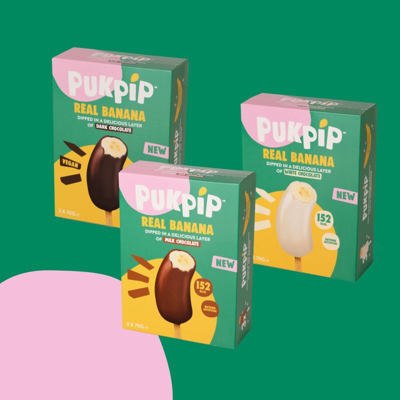 Pukpip Real Frozen Bananas are now stocked with CLF and Consort Frozen Foods for independent retailers. The brand name is derived from the word pukka (meaning good or genuine) and pip (from the pips and seeds in the fruit). Bringing these names together create the fun and playful name Pukpip, which pops as one says it.