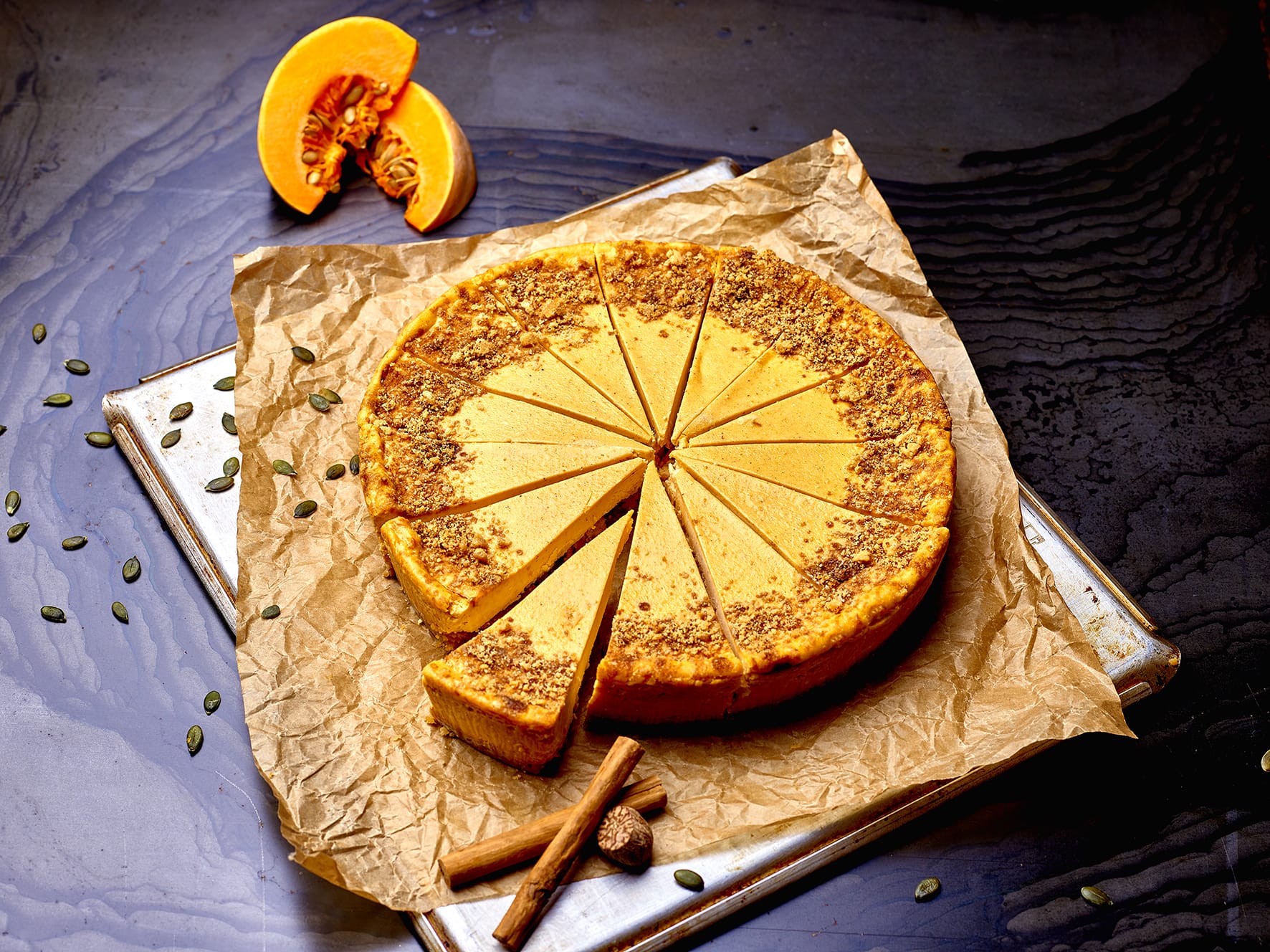 Pre-portioned into 14 slices and already meeting Public Health England’s 2020 Sugar Guidelines, the product is made with rich and creamy vegan cream cheese blended with 15% pumpkin purée, spiced with cinnamon and nutmeg on a crunchy gluten-free biscuit base, all topped with a crown of dark muscovado sugar and biscuit crumb.