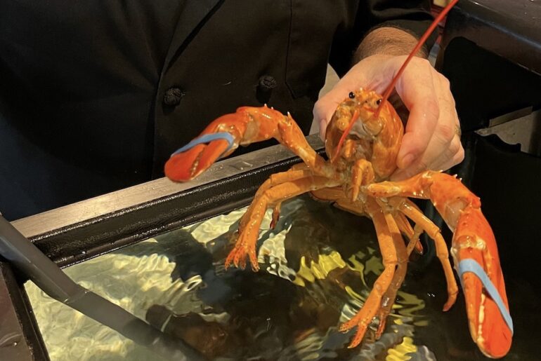 The Red Lobster and Ripley’s Aquarium teams affectionately named the orange lobster Cheddar, in a nod to the restaurant chain’s popular Cheddar Bay Biscuits. Orange lobsters like Cheddar are extremely rare – one-in-30 million – because their bright, unusual coloring makes them very attractive to predators.