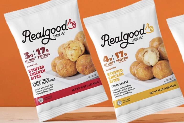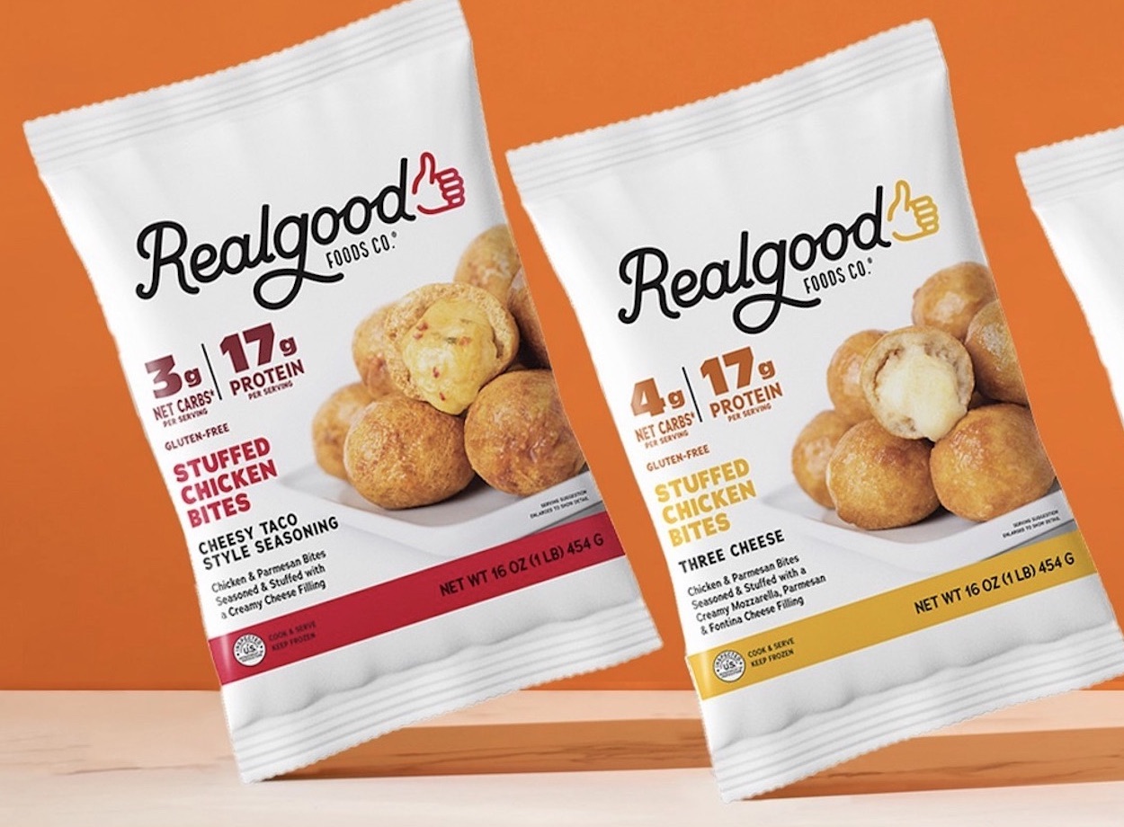 Real Good Goods Stuffed Chicken Bites are now available in the freezer sections of some 1,500 Kroger stores across the United States. Two flavors are offered, Cheesy Taco and Three Cheese, in 16-ounce (454-gram) bags. The grain-free and gluten-free products feature just three grams of net carbohydrates, while packed with 25 grams of protein per serving.