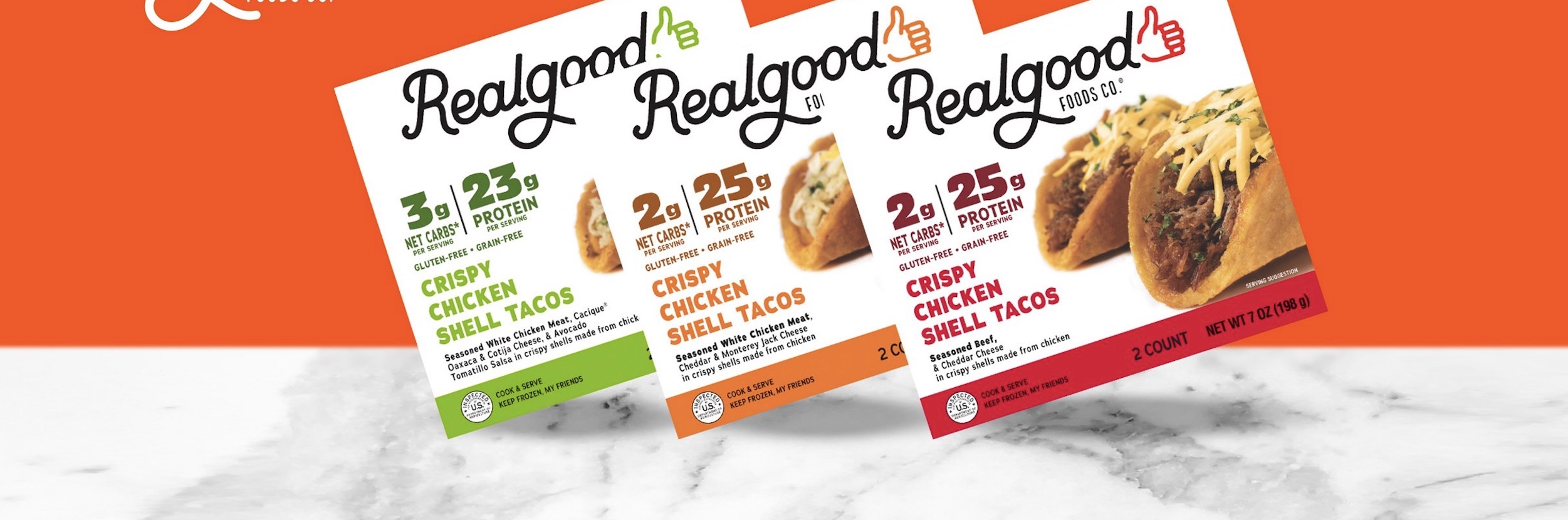 The tacos are 100% grain-free and gluten-free, have only two grams of net carbs, and contain 25 grams of protein per serving. Real Good Foods does not use processed flours or grains to produce taco shells, but instead uses chicken and cheese.
