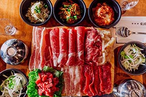 The dinner menu at Suji’s Korean Grill in Omaha leans palatial with such offerings as “Endless Korean BBQ” featuring marinated beef bulgogi (thinly sliced ribeye steak), flank steak and brisket. Also featured are sam-gyeop sal (pork belly), hangjung sal (pork jowl) and chicken bulgogi in a light Korean marinade. All are served with banchan (vegetable side dishes), lettuce leaves, samjang (seasoned bean paste sauce), rice and house soy sauce vinaigrette.