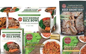 Indeed, the all-natural, preservative- and additive-free assortment of frozen retail offerings in the Suji’s Korean Cuisine line range from 9.5-ounce packs of thinly sliced, marinated savory beef and chicken bulgogi and spicy pork bulgogi, to fully seasoned, ready-to-grill traditional beef kalbi (beef short ribs thinly cut across the bone and then marinated in a blend of soy sauce, pear purée, vinegar and sesame oil), to 10-ounce beef bibimbap and spicy chicken bibimbap rice bowls.