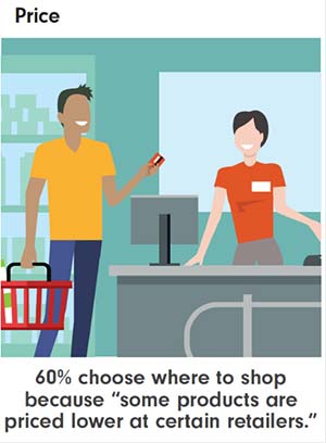 Price, of course, is an important factor as to why shoppers are traveling to different retailer stores within a given day or week to buy a product that is sold at multiple locations.